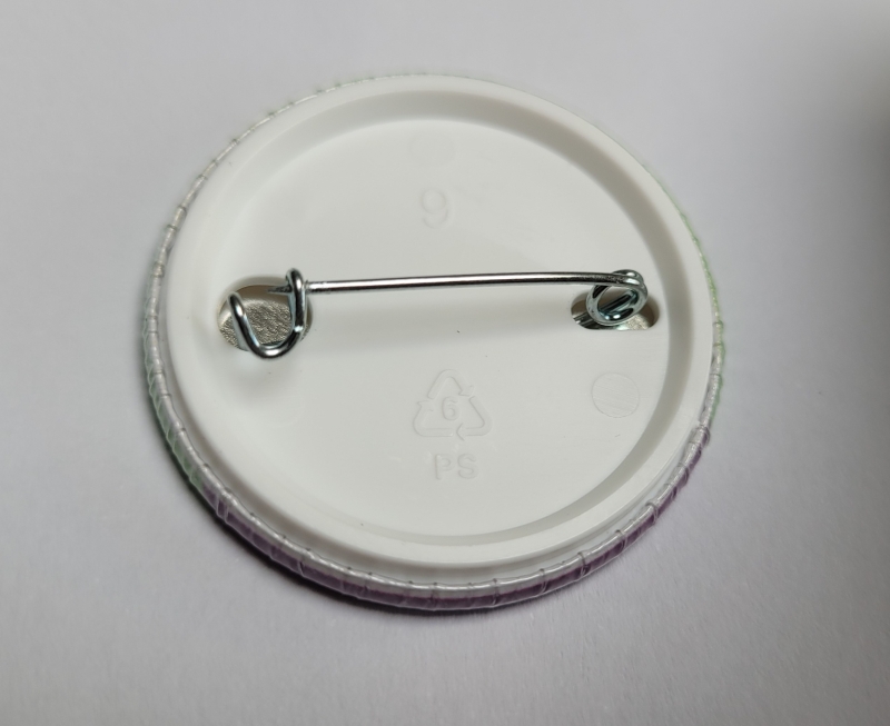 De button kan je op je kleding vast spelden