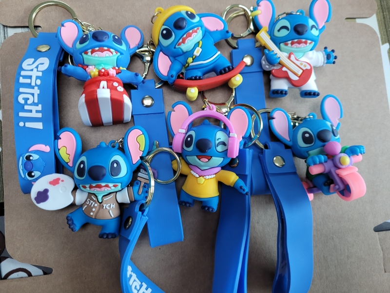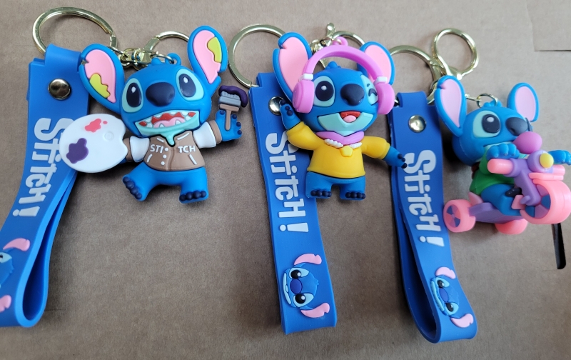 Aan de keyring nog een blauw bandje met de tekst: Stitch, deze is 10.5 cm lang